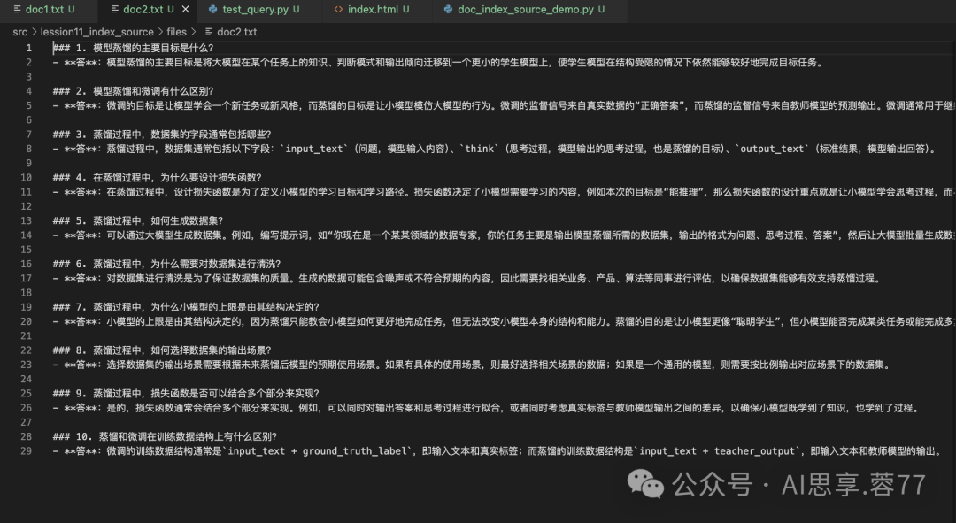 注:这些问答对是由大模型自动生成的。简单来说,我将一篇文章交给大模型,让它会根据文章内容,自动生成若干组相关的问答对,作为后续知识库的基础。
