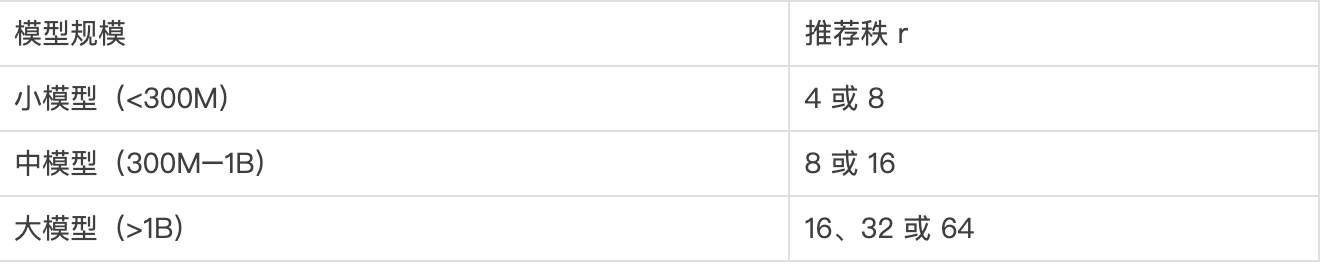 3、秩 r 的选择推荐秩 r 是你指定的小维度,对补丁的表达能力与参数数量起决定作用。经验推荐:
