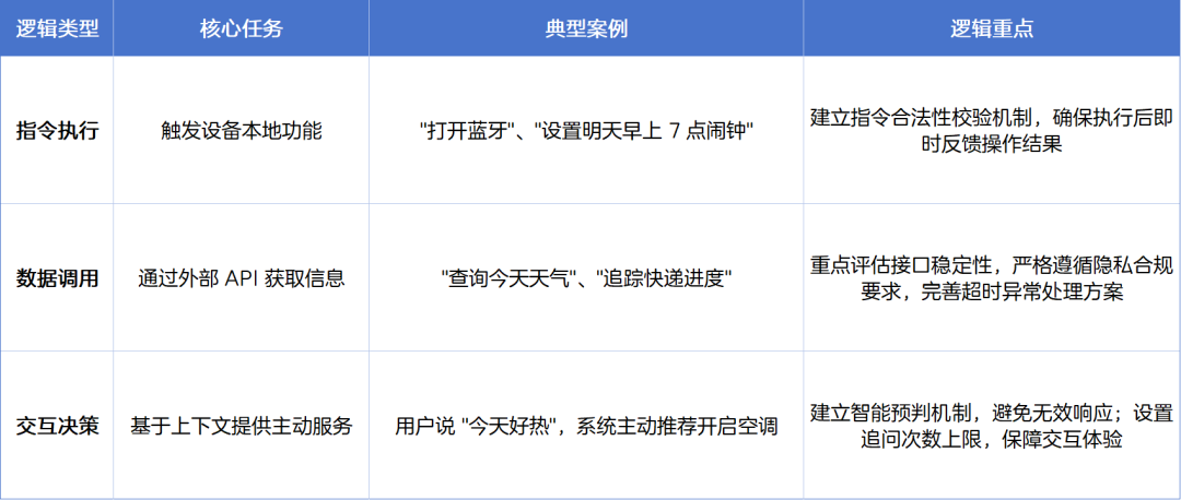 语音识别将语音转成文本后,需通过 “处理逻辑” 判断“该做什么、怎么做”—— 这是连接 “理解意图” 与 “最终响应” 的核心环节,需额外关注逻辑设计的合理性与稳定性,避免 “听懂了但做错了”。