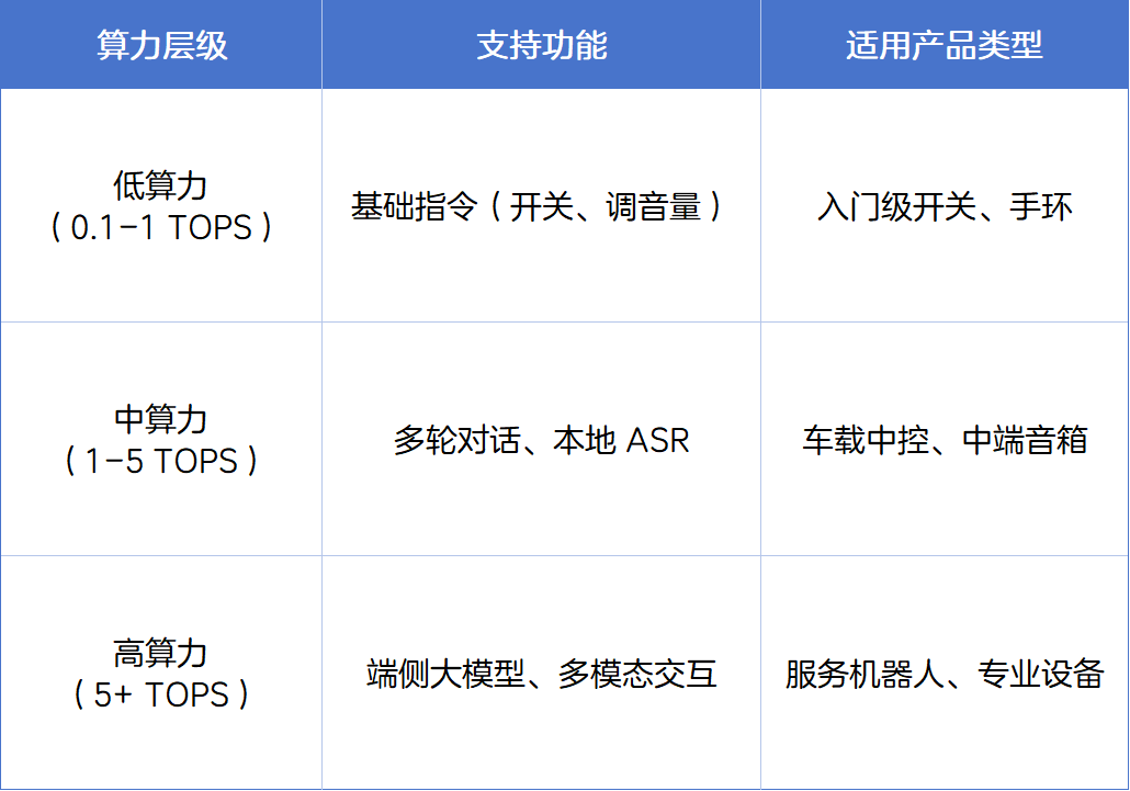 设备的 “中央处理器”,负责运行语音识别、语义理解等算法,处理麦克风阵列采集的声音数据。其算力(以 TOPS 为单位,即每秒万亿次运算)直接决定了设备能否快速响应指令 —— 如同人类大脑的反应速度,决定了对话的流畅度。