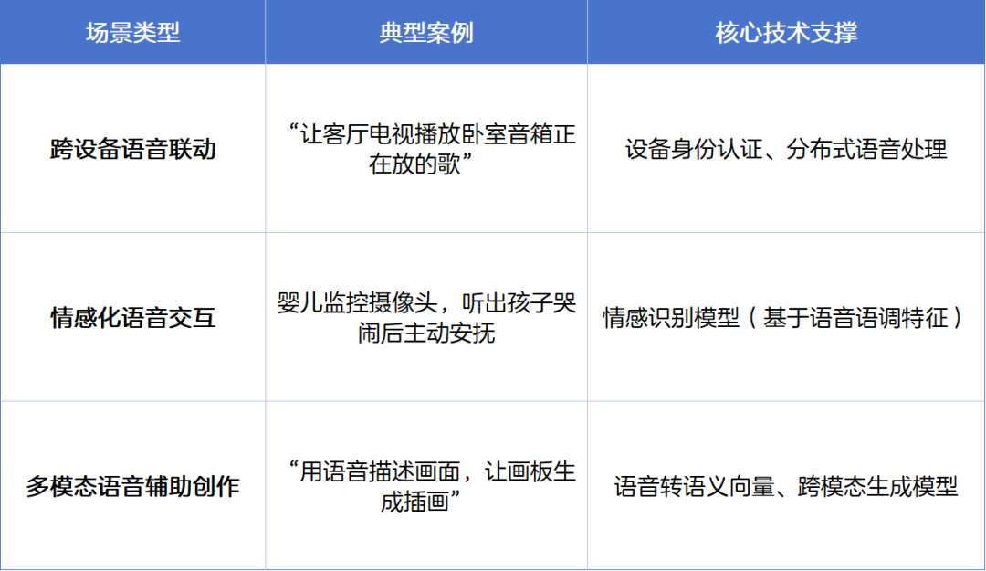 - 语音合成(TTS):将设备响应转换为自然语音,是“输出端口”,影响用户接收信息的舒适度。