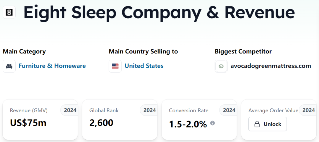 仅在2024年,Eight Sleep的核心产品线上销售就达到7500万美元(约合人民币5.4亿元)。