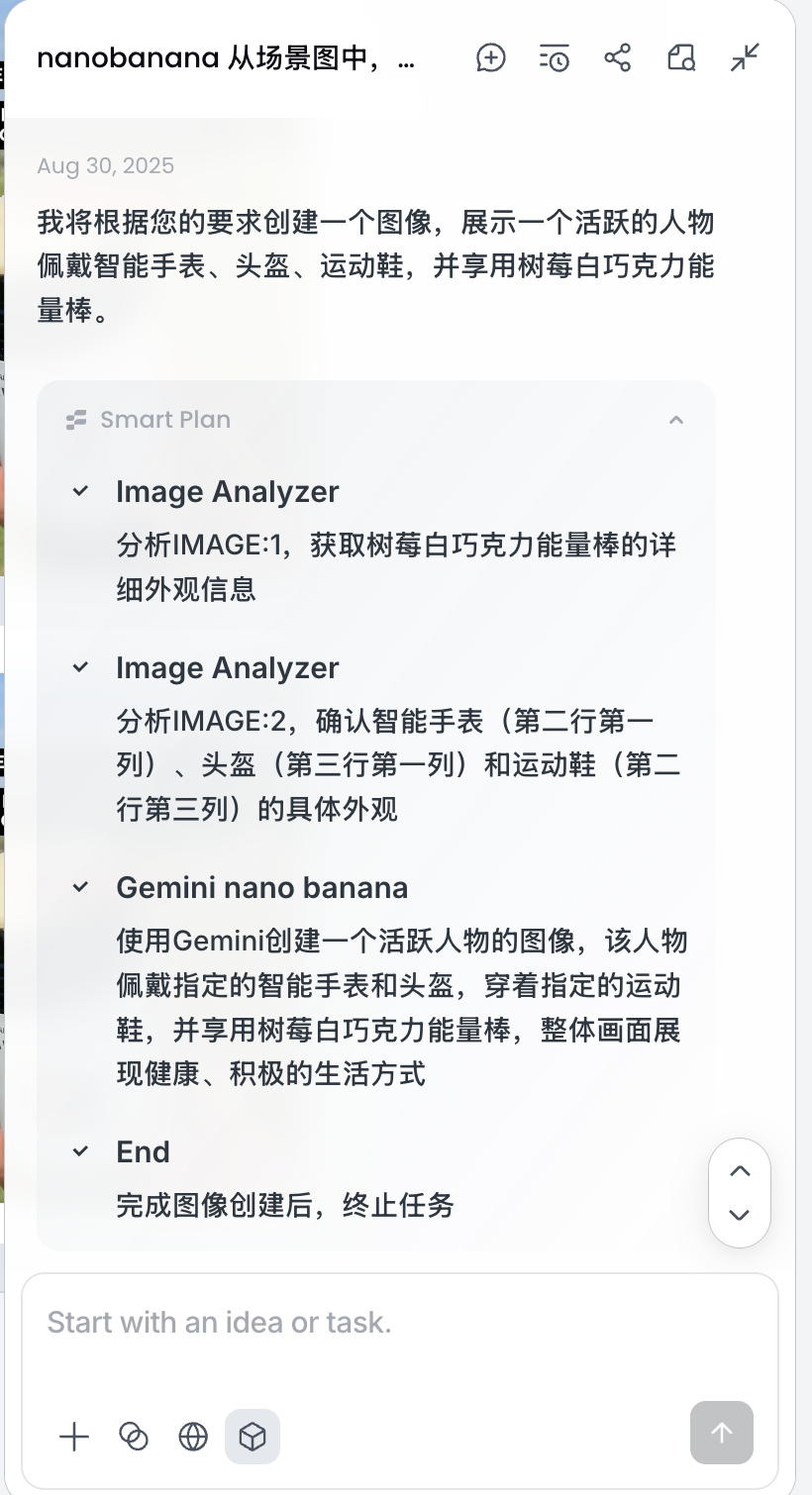 Lovart 做的不是简单地接入模型 API,而是像一个总指挥,将 Nano Banana 这样神级的生图模型,以及专攻视频、3D等的模型,整合成流程的一环,服务用户。