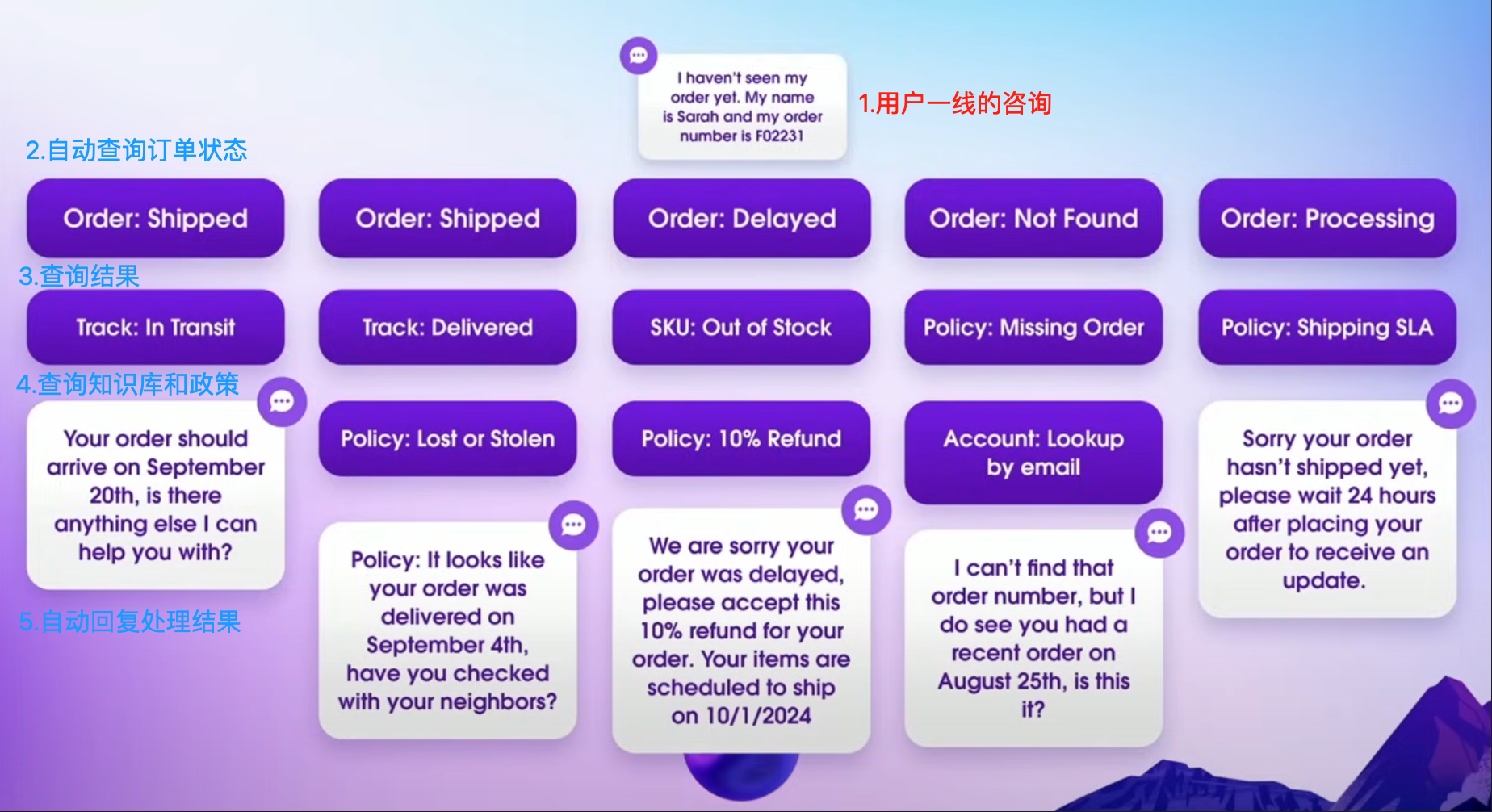 LangChain、Ai Agent框架都有助于实现,Agent的用途也非常广泛,用户也可以不一样,成为私人Ai助手、复杂工作流跨系统决策和执行、科学创新、商业决策支持、游戏NPC、人的情感陪伴、机器人的大脑等等,如本文最开始举的Agentforce通过推理引擎自主识别客户意图,调取相关工具,从关联用户信息、查询订单状态、根据状态继续决策如何回复还是继续查询相关政策、最后如何回复客户、内部记录和反馈等全面自动完成,这个Agent为用户提供了全天候的问答服务,在对话中提取客户需求在客户资料中进行标签化,以支持后续的商业营销活动,记录商品供应链或平台的缺陷问题,以支持后续产品迭代;Shopify的智能体可以帮助商家自动准备好产品上架的物料以及可自动完成,还是一位高级分析师,自动分析每日营业情况以及归因和改进点,甚至还是一位情感安慰大师,当我的店铺没有产生任何销售时跟我说这一切都很正常,因为一系列的客观原因。