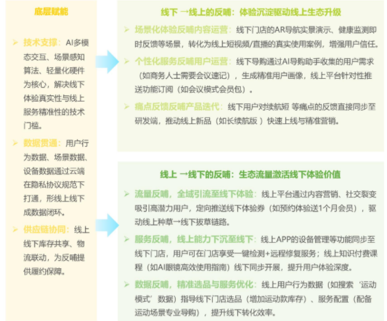 - 数据层:合规前提下的跨设备数据协同,AI眼镜与智能手表、汽车车机形成“健康-出行-工作”数据闭环,提升服务精准度;