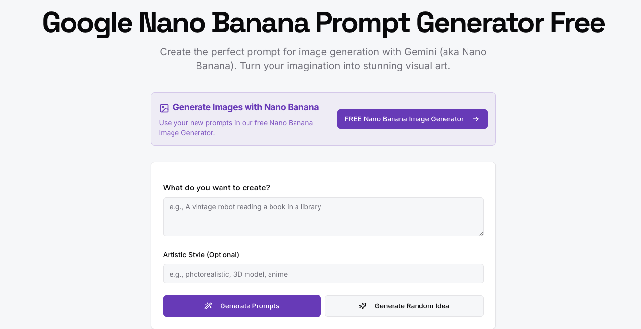 一款免费的Nano Banana提示词生成器工具必不可少:https://aisuperhub.io/tools/nano-banana-prompt-generator