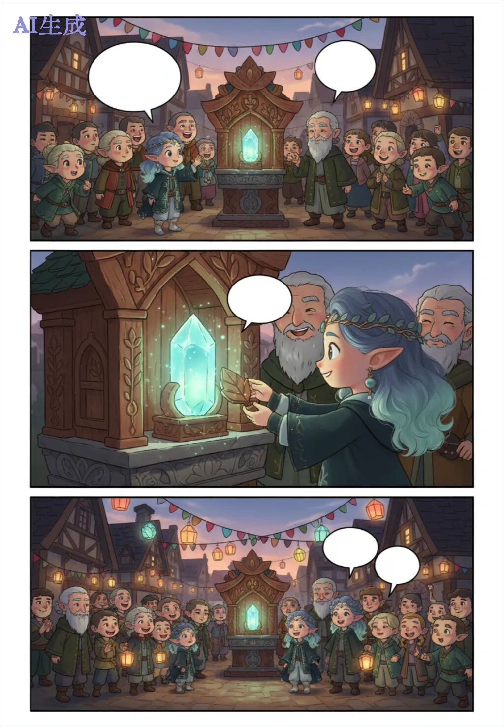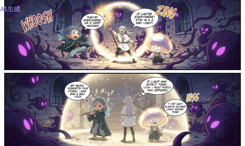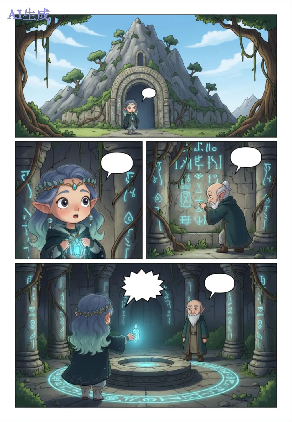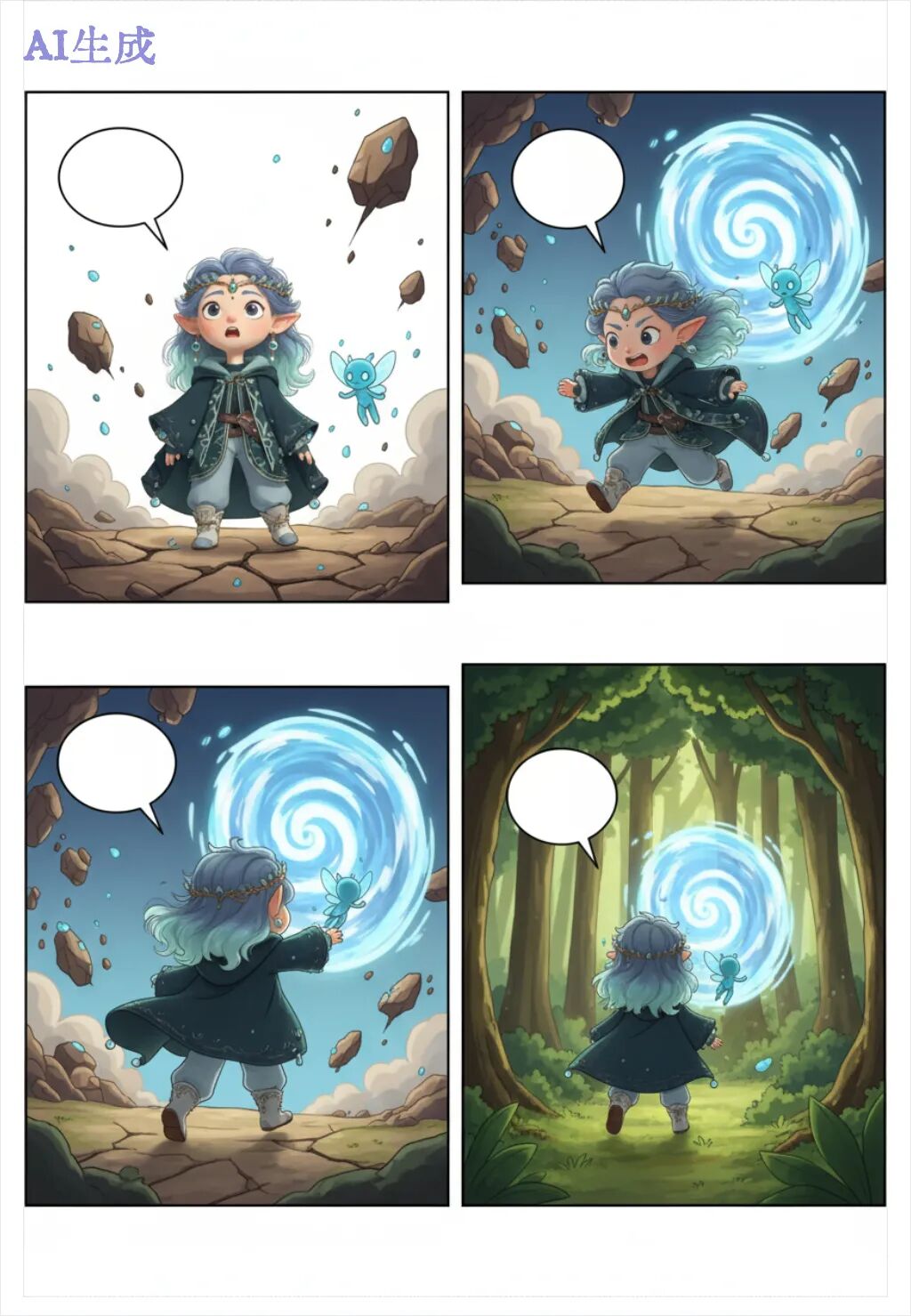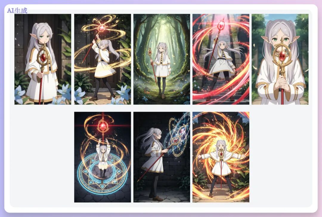 提示词:使用Nano Banana模型,为角色创作动态分镜序列,展现各种电影化视角、表情和魔法瞬间,保持角色设定和形象不变。