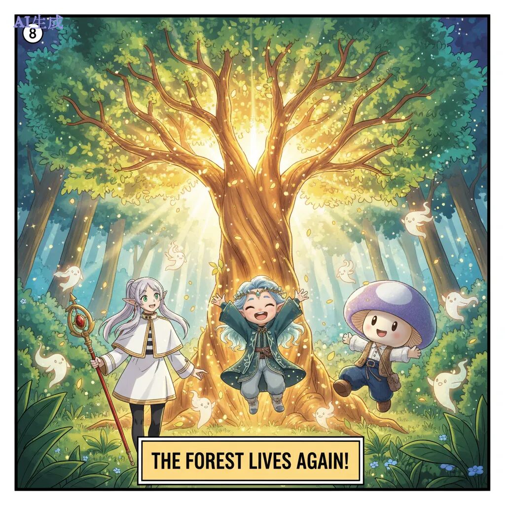 使用Nano Banana模型,参考所给图片的角色与风格,生成 8 格连续分镜(起承转合),保持角色关键识别点一致;每格使用不同镜头语言与构图(大全景、近景、特写、俯拍、仰拍、运动镜头),呈现丰富表情与动作。