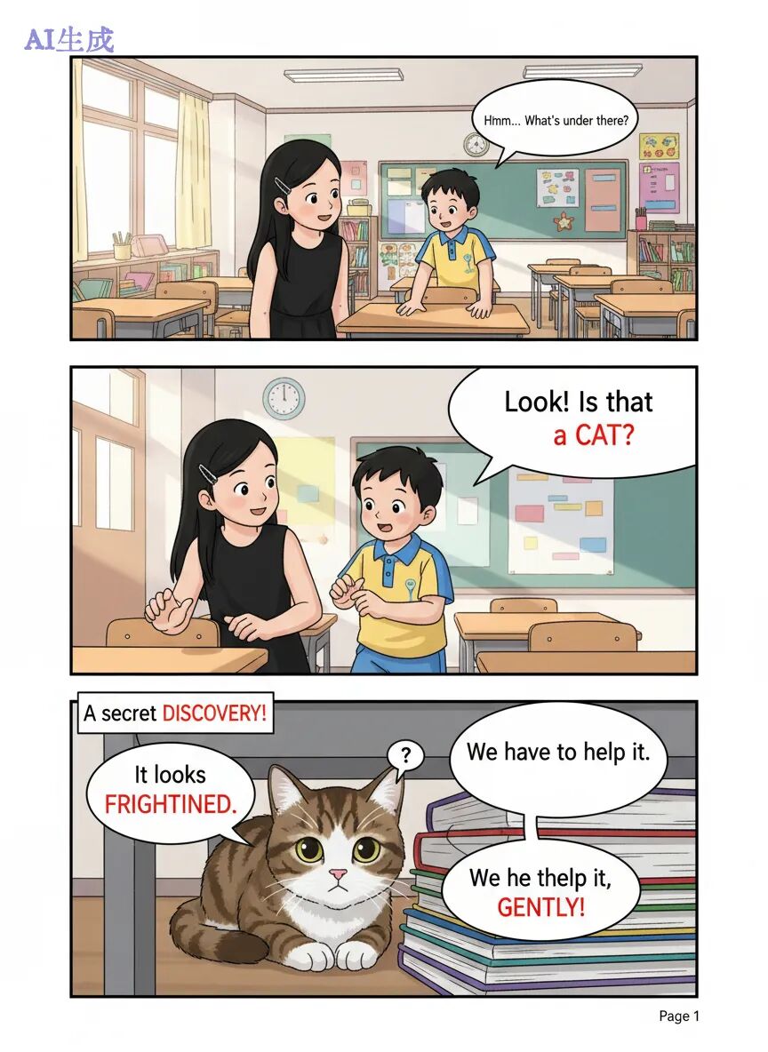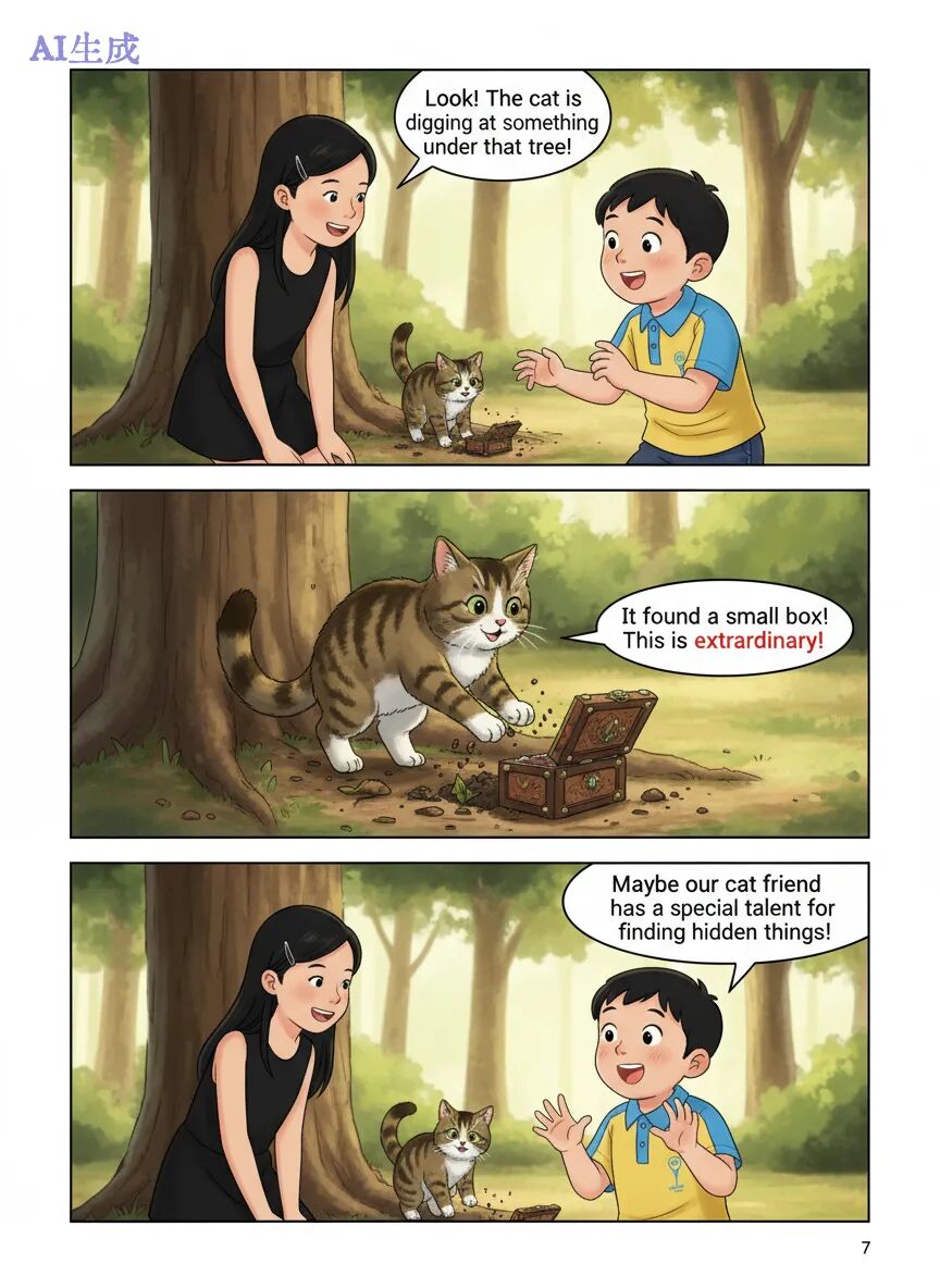 比如生成连续性漫画故事,一致性妥妥的,还包带加入四级生词的。故事内容也挺有趣的哈哈。