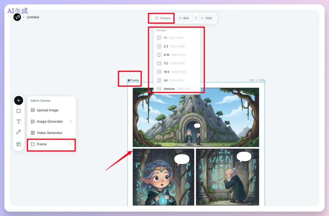 选中画布中我们的3张图片,Tab 一下,然后输入提示词: