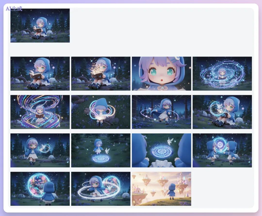 我这里提示词没有写过多情节,所以看起来故事不够清晰完整,大家可以在提示词中加入详细的故事情节。