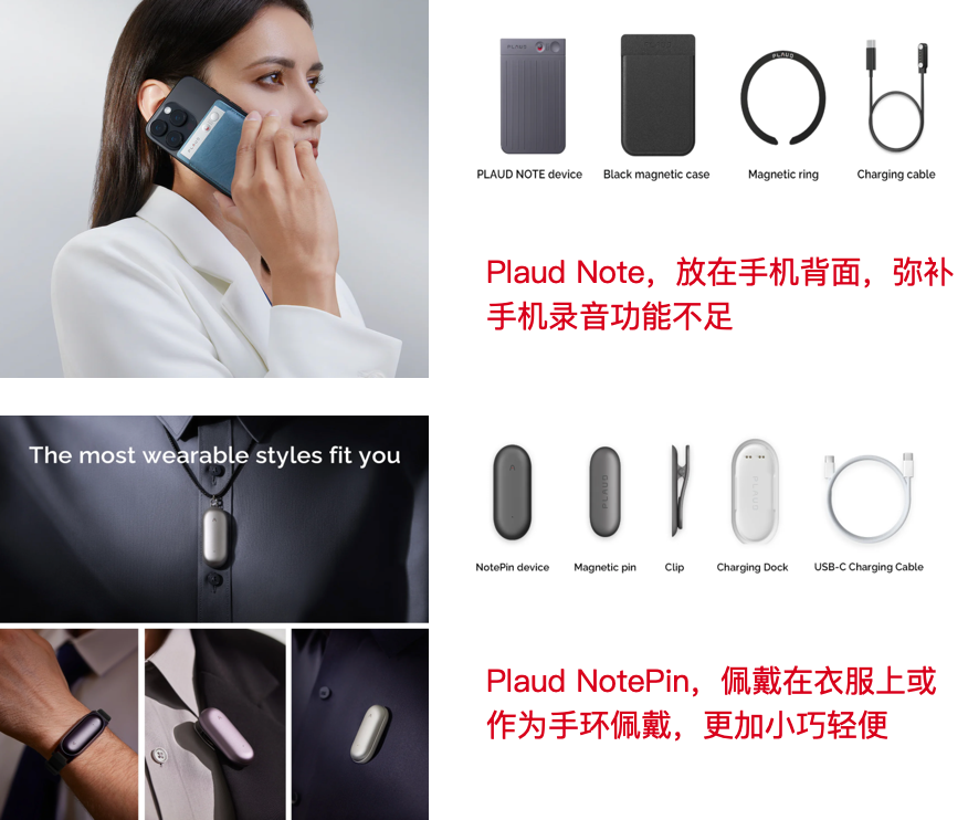 Plaud的两款录音产品形态差异很大。从它PMF的成功实践表明,未来智能硬件会因贴合场景而呈现多样性。