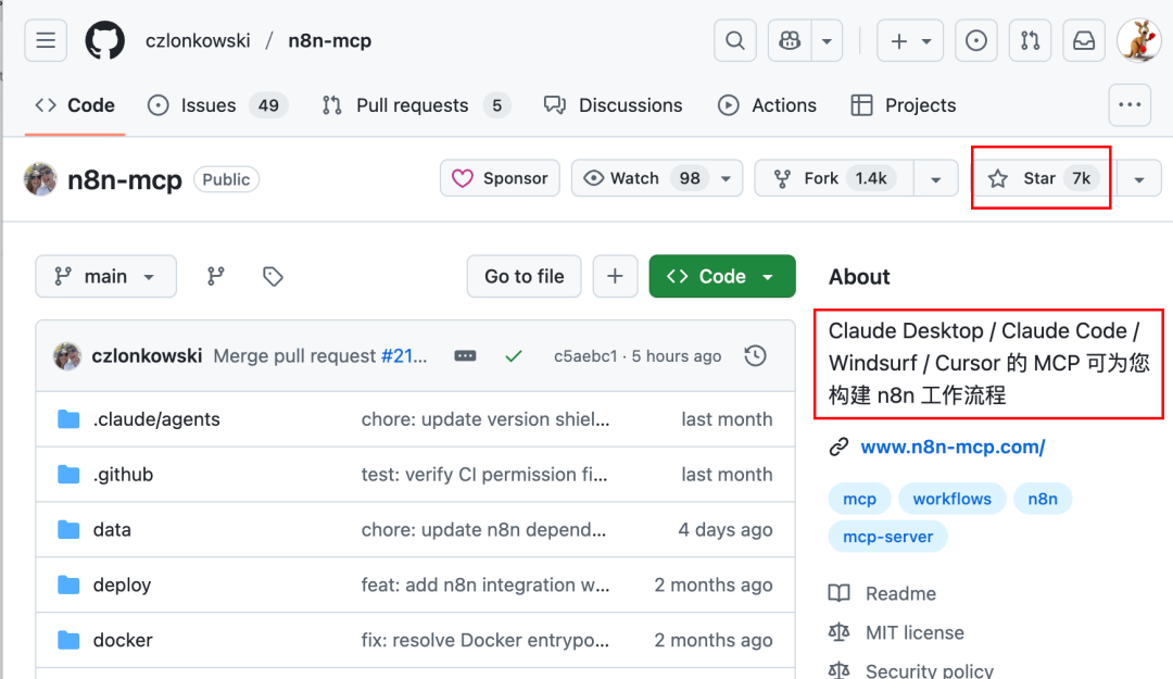 这个方案的核心是一个目前只有7K Star的开源项目:n8n-mcp