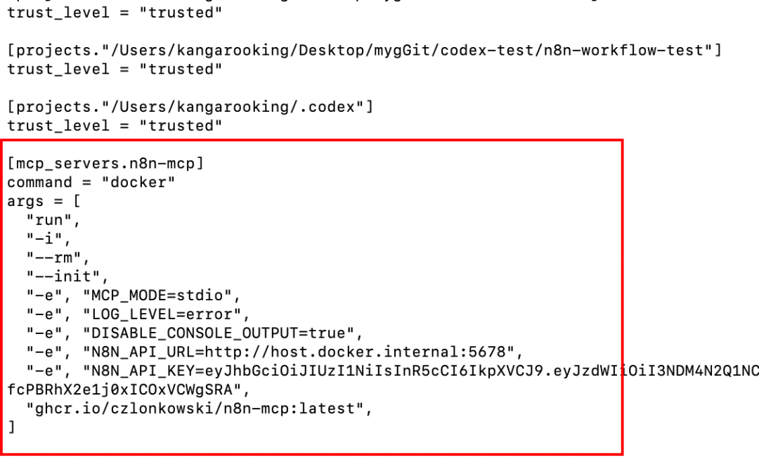 各种查资料,看issues,都没用,每次尝试了一些方案之后,每次都告诉自己,这篇的目的不是解决Codex的bug,而是介绍n8n-mcp