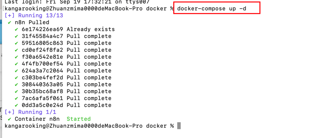 然后在该文件的当前目录的终端执行docker-compose up -d 就可以更新了。