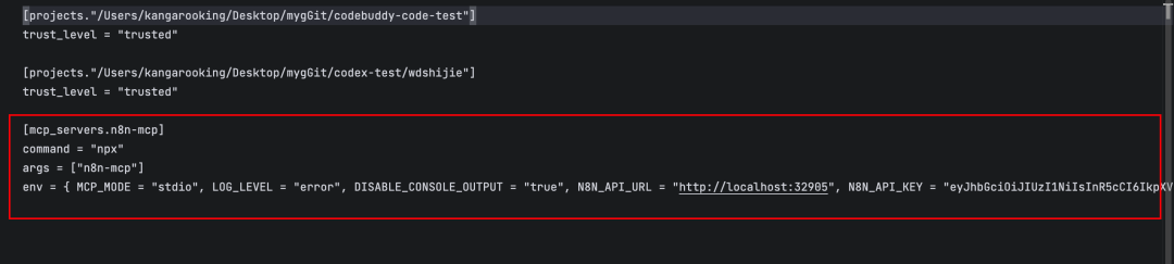 最终.codebuddy.json里面的n8n-mcp配置如下图
