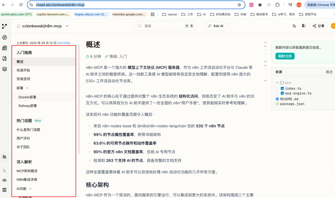 有了它,AI就拥有了一个实时、准确、全面的n8n官方文档和工具信息库。