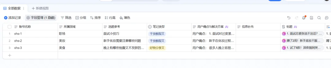 效率翻倍!我用一张AI表格重构了小红书运营工作范式
