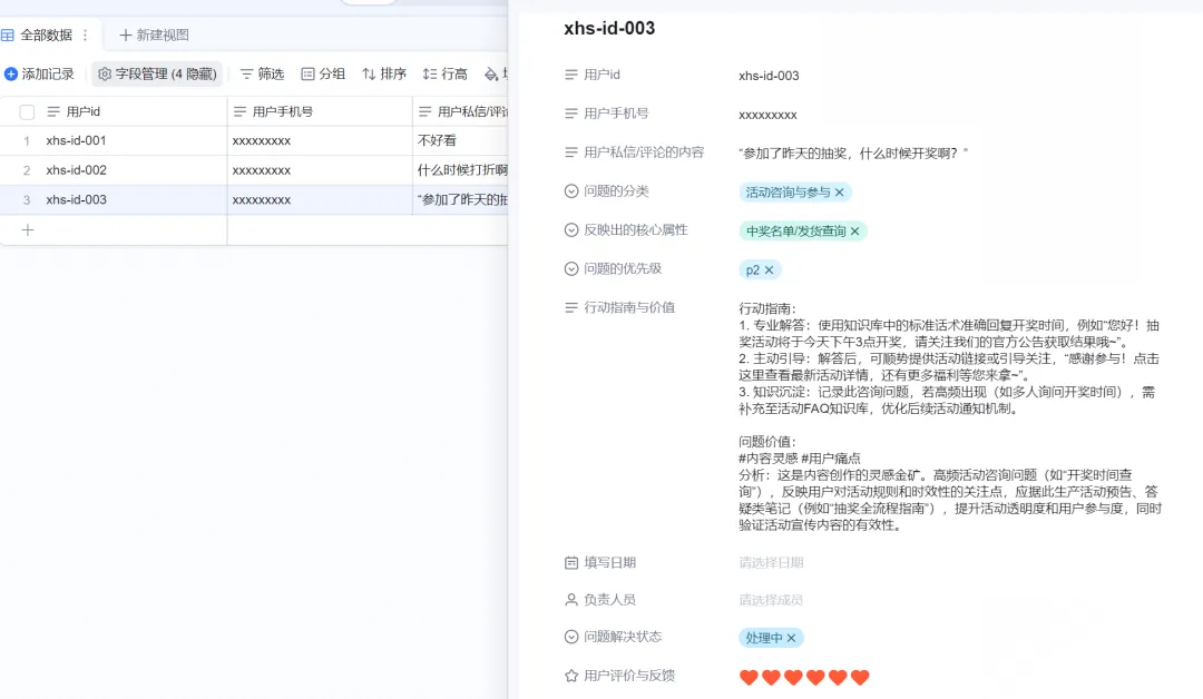 在平台生态中,大量信息是非量化、非结构化的——用户的一句吐槽、笔记中的一个热点、客服的一次反馈,这些有价值的信息散落在各处,如同珍珠散落大海。表格的意义,就是将这些平台本身不提供、非量化且无序的信息,通过结构化、规范化的方式,转变为可操作、可分析的有序数据。