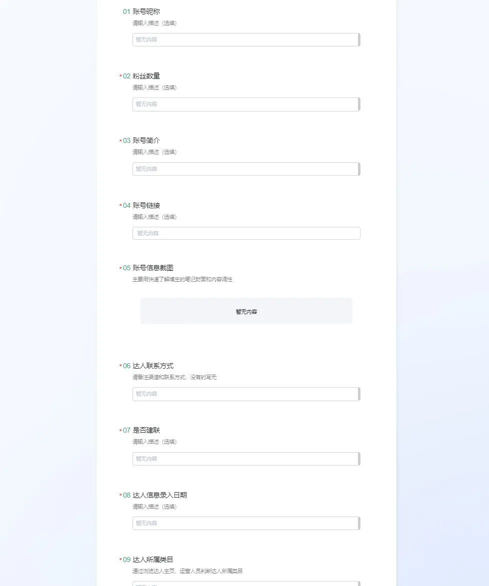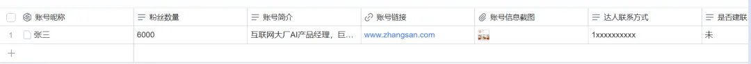 一是信息收集方式(行为)的变化,AI表格可以通过内嵌的AI表单的形式,录入达人信息,收集方式更加便捷。