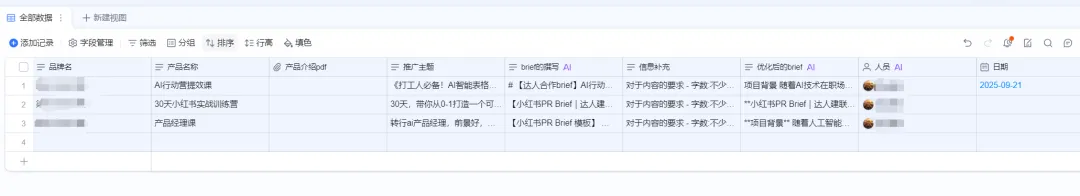 而现在,我们可以通过AI表格快速生成我们的brief。