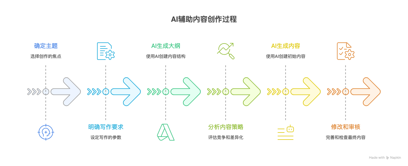 - AI介入点3:内容正文撰写如果可以,自己先写,尤其是一些代表个人思考的核心观点,自己实在想不出来,可以让AI根据写作要求(文风、平台特性、字数等)先生成,然后在它生成的基础上进行修改。
