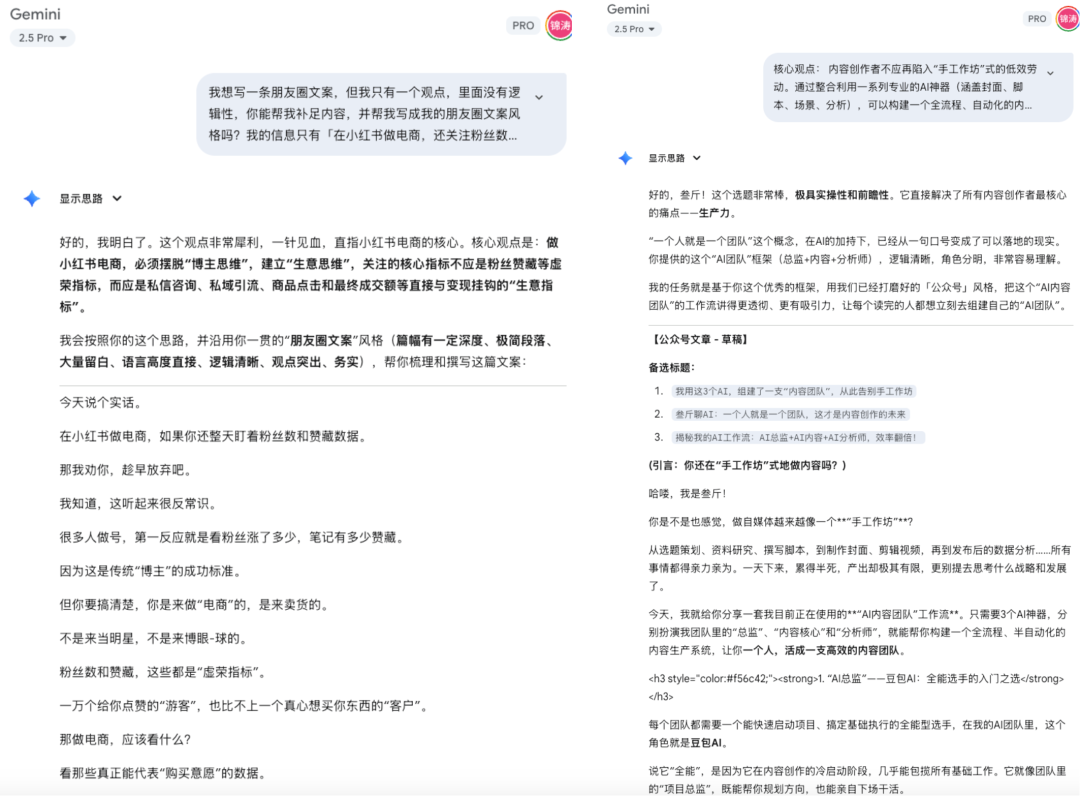 除了这些,我的朋友圈文案,公众号文章,很多也是 AI 协助的。