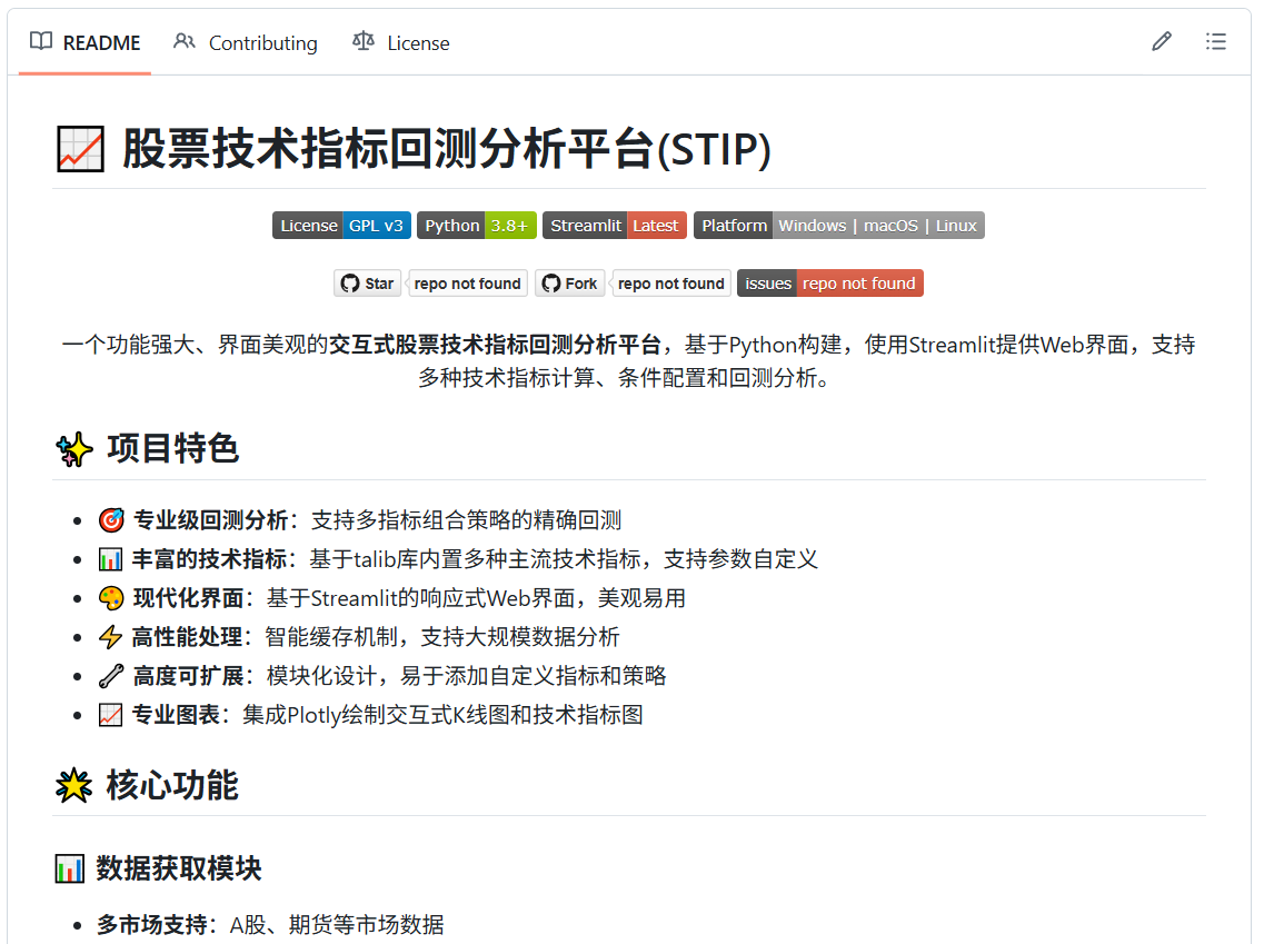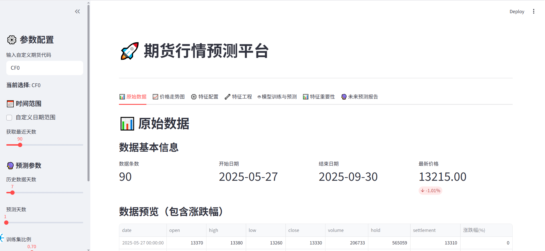 在数据获取方面,该项目通过akshare等数据源获取期货历史数据,支持国内期货品种,并提供基础参数配置功能。数据获取后,系统会自动进行数据质量检查,确保数据的完整性和一致性。