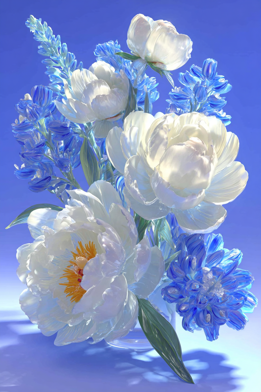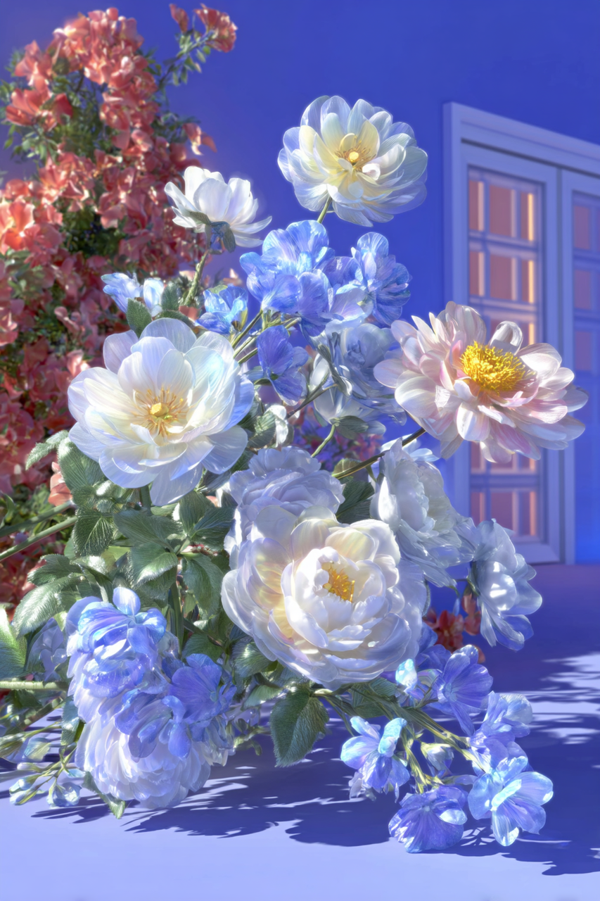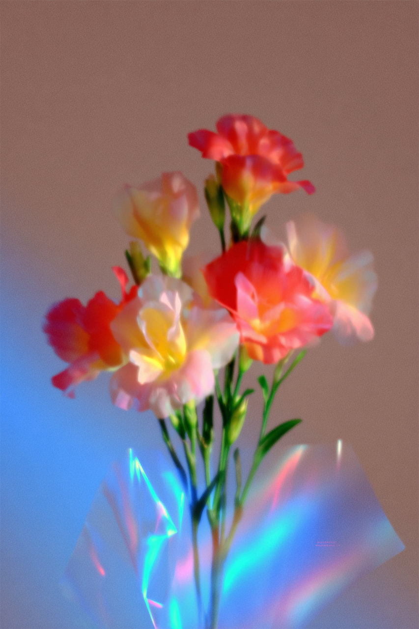 收集的代码加在提示词最后,哪怕相同的提示词,加了不同的sref code之后也会有不同的质感。比如下面这些图片,提示词都是以花束为主体,大家可以看到添加sref code后不同的图片风格: