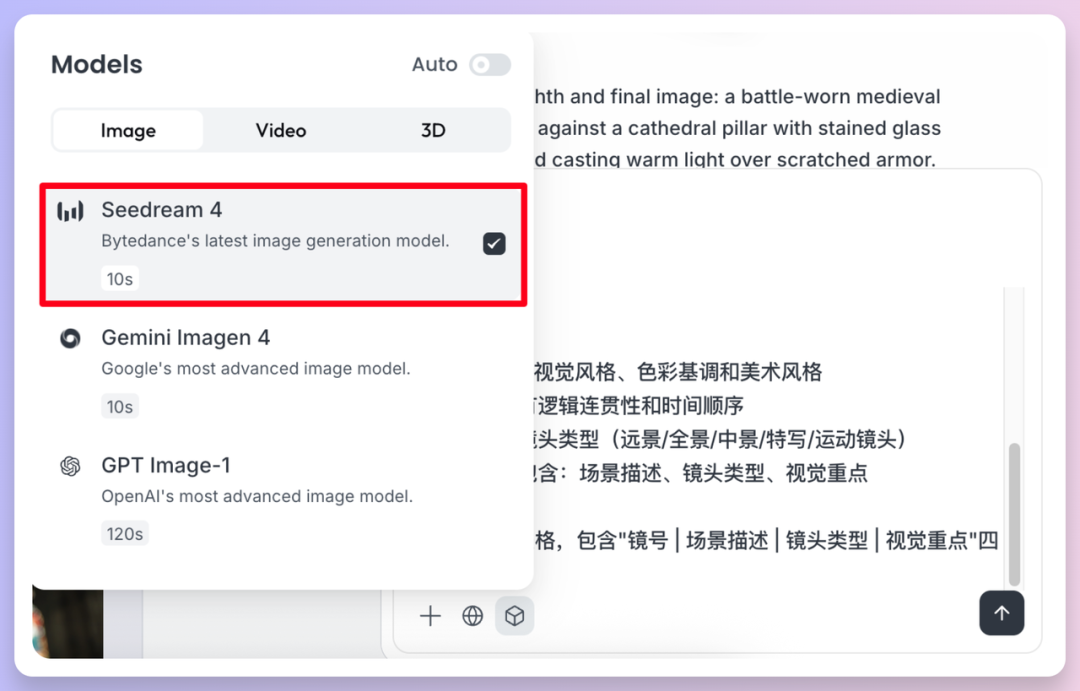 还是选择图片Tab一下然后输入提示词(也看情况,如果觉得想用Seedance 4.0 那还是去对话框发送,我觉得Seedream 4.0也很不错):