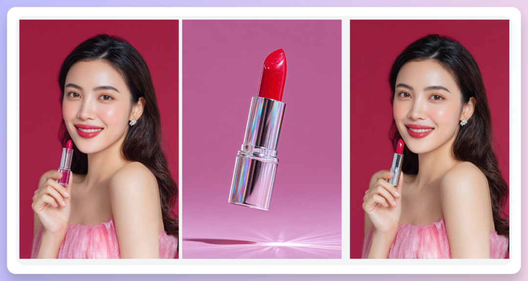 如果觉得只有人物比较单调,那么还可以基于单产品生成更多产品的展示效果图。(提示词为AI优化,供参考):