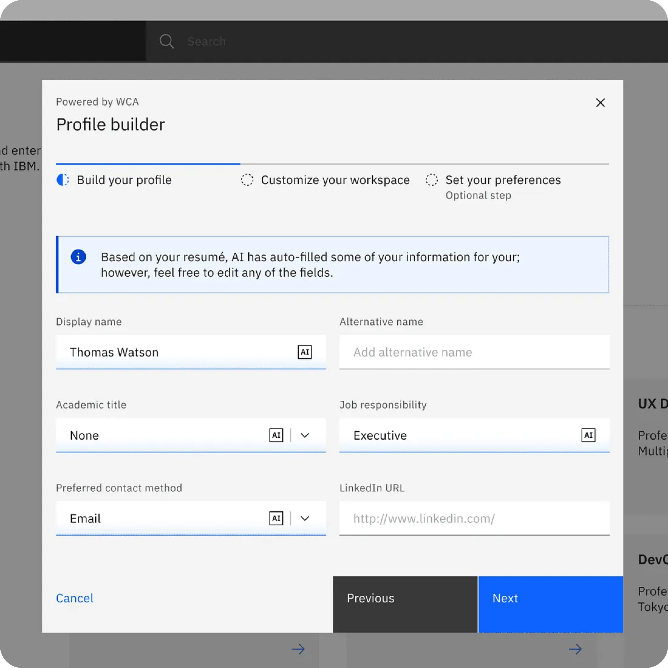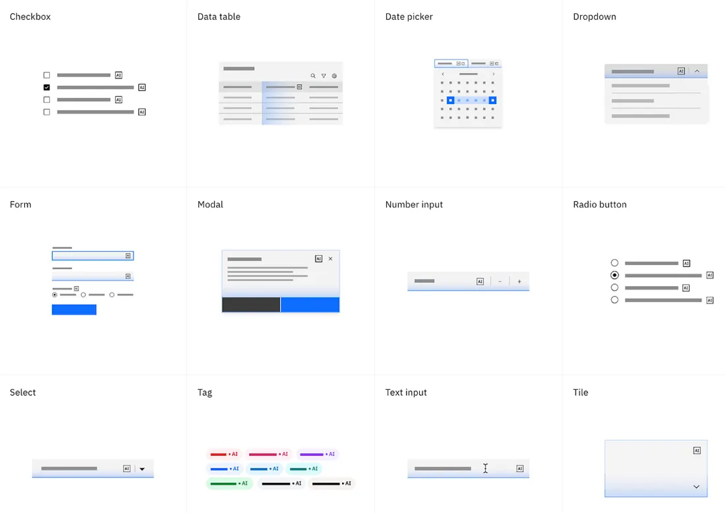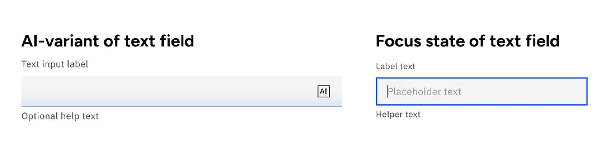 “ Carbon for AI ”建立在现有 Carbon 组件的基础之上,通过添加蓝色光晕和渐变效果来突出显示 AI 相关实例。到目前为止,已有 12 个组件推出了 AI 变体,例如模态框、数据表格和文本输入框等。