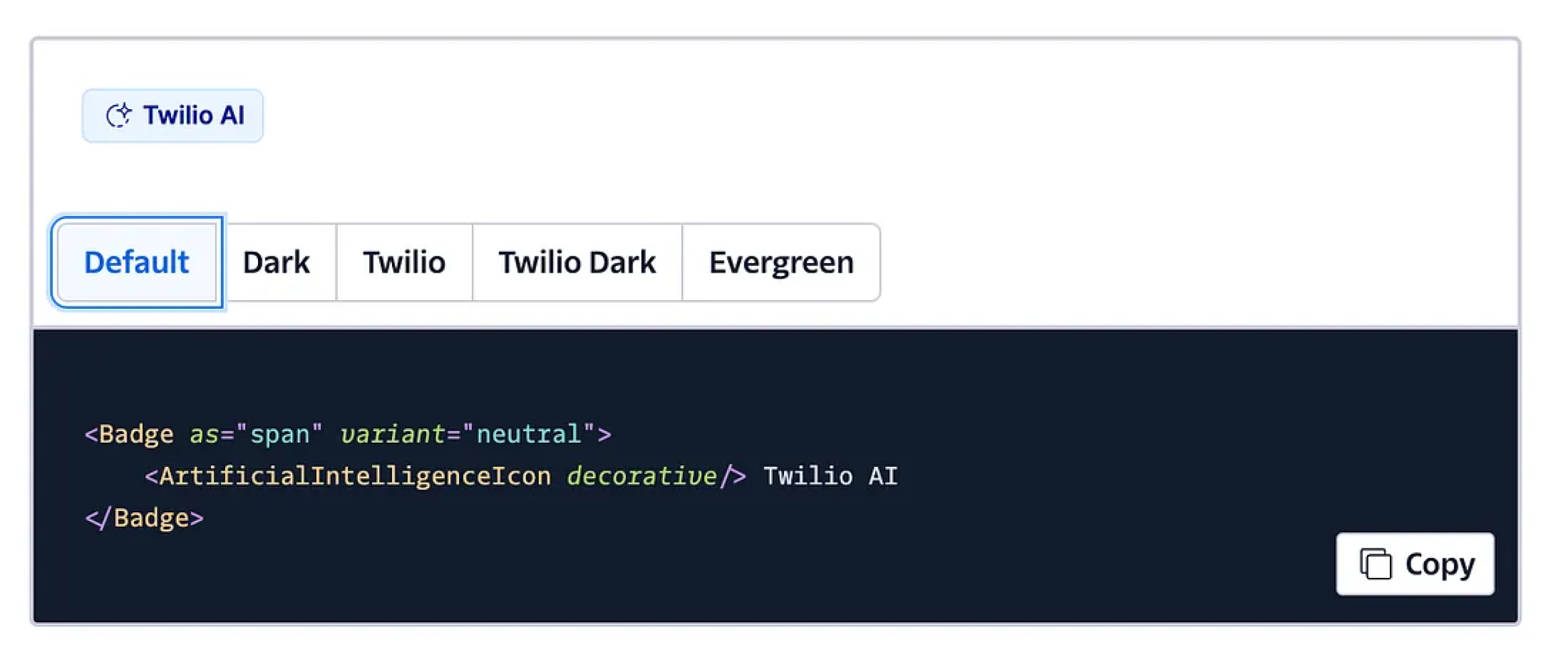 遗憾的是,目前仅有少数开源设计体系明确包含了 AI 组件与设计模式。虽然我希望更多系统能尽快跟进,但截至目前,只有 GitLab 的 Pajamas 、IBM 的 Carbon 和 Twilio 的 Paste 在设计指南中提及了 AI 相关内容。