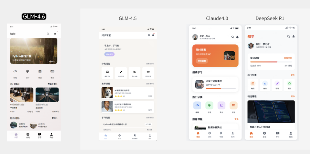 下面就带来这几方面的实测过程,首先是前端UI设计方面,这里我们通过Z.ai生成几种不同的APP也没来看看效果