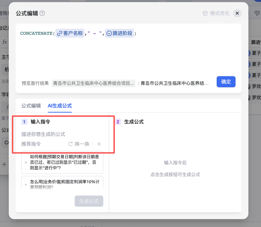 AI表格之所以能承载起一个小型系统的功能,和强大的公式能力是分不开的,很多复杂的操作和计算,比如有规则的生成编码,合同已付款额的计算等。其实基于AI表格开发最耗时间的地方就是写公式,因为对Excel的公式本身也不熟悉,而且不同厂商的AI表格在公式上已经出现了差异化,遥想在企微智能表格查着文档写公式的那种痛苦,在钉钉AI表格上却异常的轻松,因为钉钉AI表格的AI写公式功能极大地简化了我们的数据处理工作。现在通过自然语言描述需求,AI就能自动生成相应的公式。比如,当我们需要计算某个项目的利润率时,只需输入”计算每个项目的利润率”,系统就会自动创建相应的计算公式,并应用到所有相关数据上。
