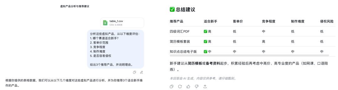 AI 就会像图片右边这样,直接给你一个可视化数据分析报告。