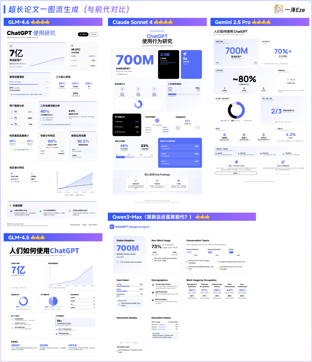 GLM-4.6 比起 前代 4.5,在布局设计与推理理解(从内容结构与提炼上看),提升明显基本与 Claude Sonnet 4 持平?