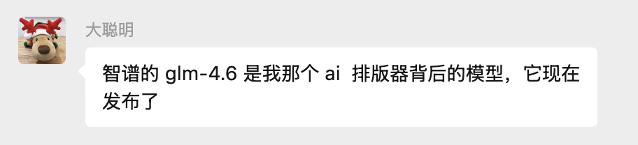 也难怪朋友 #赛博禅心 @大聪明 刚刚发布的公众号排版 Agent,其自动排版的底模也选择了 GLM-4.6。