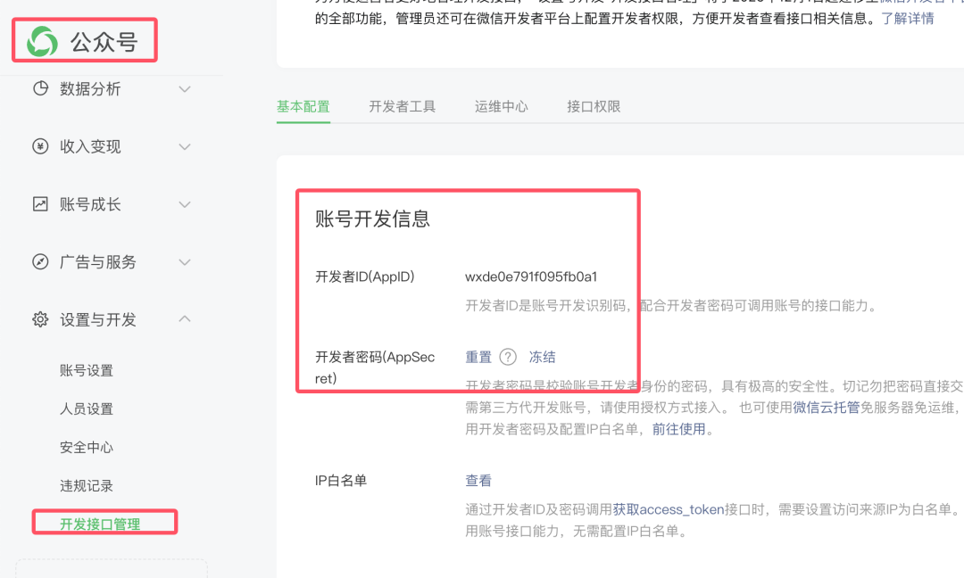 公众号-开发接口管理-找到ID+密码。需要订阅号有做过实名认证。