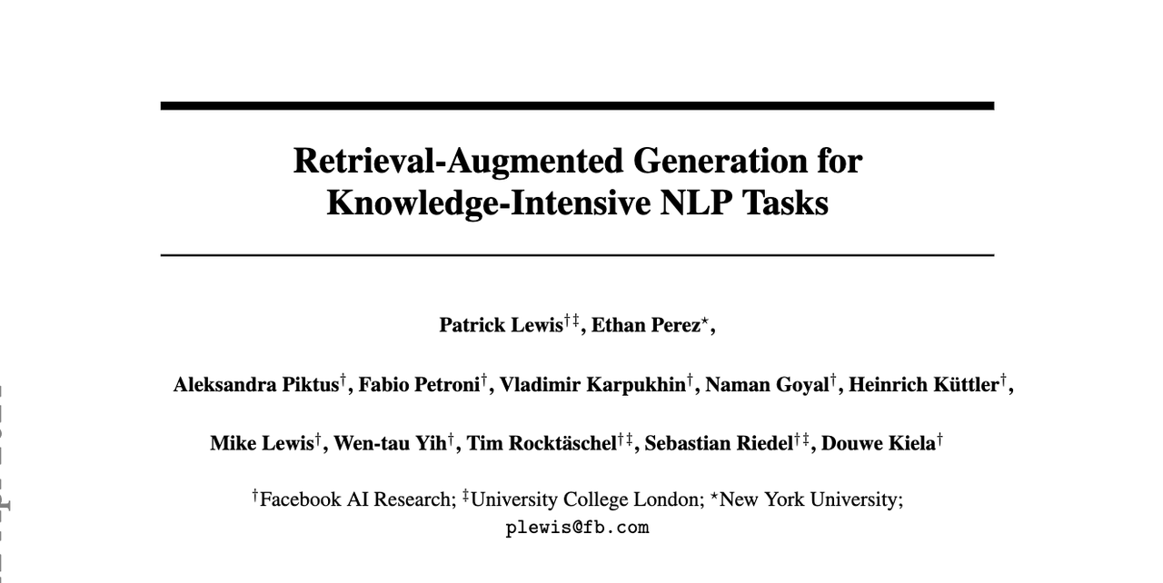 另外市面上RAG的技术论文很多,但我们其实就搞懂一篇开山论文的核心内容和发布时间就行,后续所有的RAG架构都是在此之上的改版和优化,就是2020年的《Retrieval-Augmented Generation for Knowledge-Intensive NLP Tasks》,它的核心观点就是,借助外部知识让大模型减少幻觉,解决大模型知识更新需要重新训练的缺点。