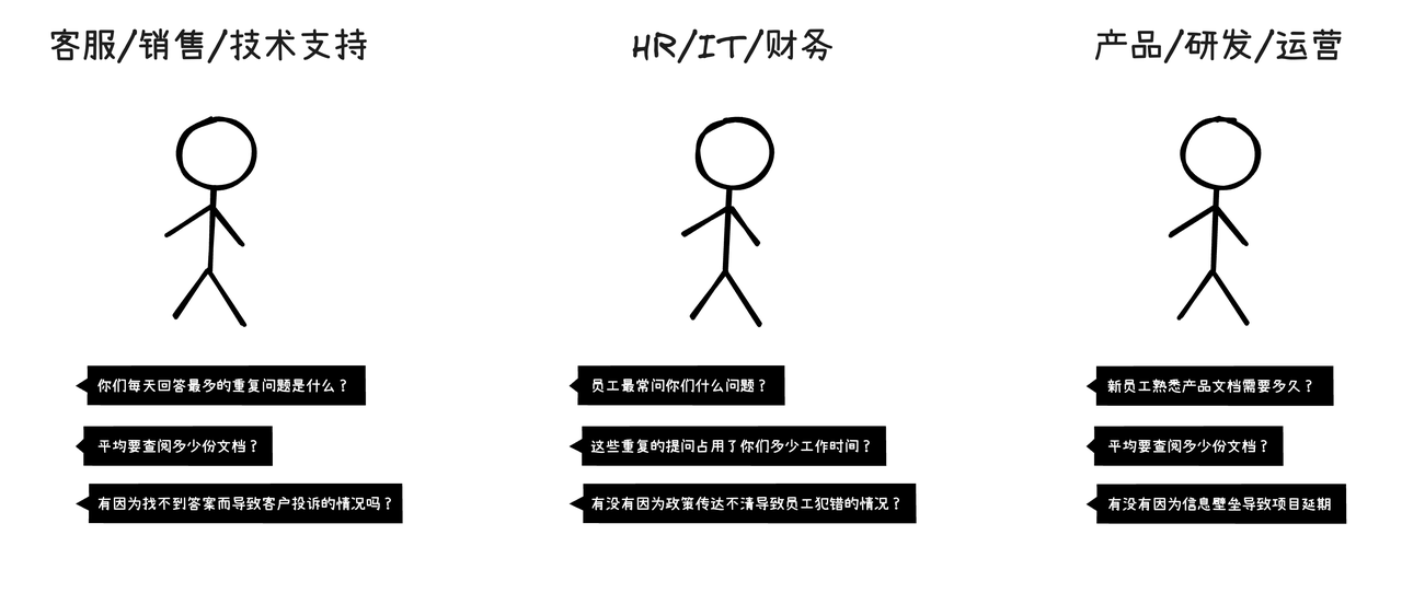 首先,不要立刻就想我要做个RAG,而是去想公司里谁、在哪个环节,因为信息利用效率低下感觉很痛苦。怎么找?用访谈&问卷