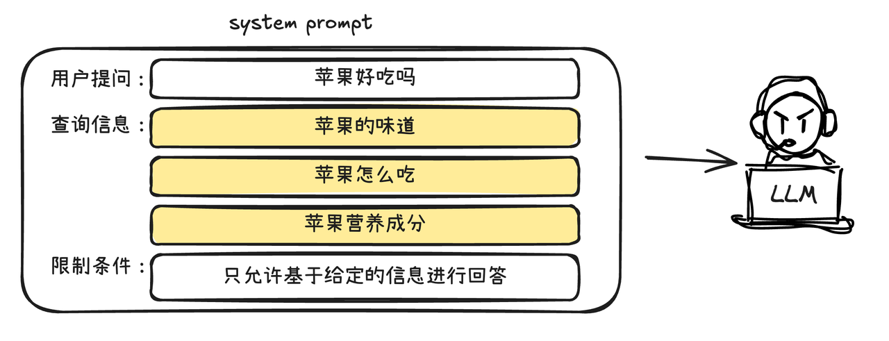 - 查询信息:这是我们从知识库里检索到的、与问题最相关的背景资料。