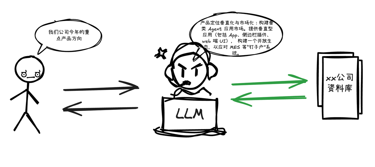 小明作为产品经理刚入职一家新公司,领导让他快速熟悉所有产品资料和规章制度。这个时候开始幻想了:要是有一个大模型能够回答所有关于公司资料的问题就好了,解决套娃文档,同事不回,文档看不懂的问题,甚至还有一些历史遗留问题要是也能直接说出来
