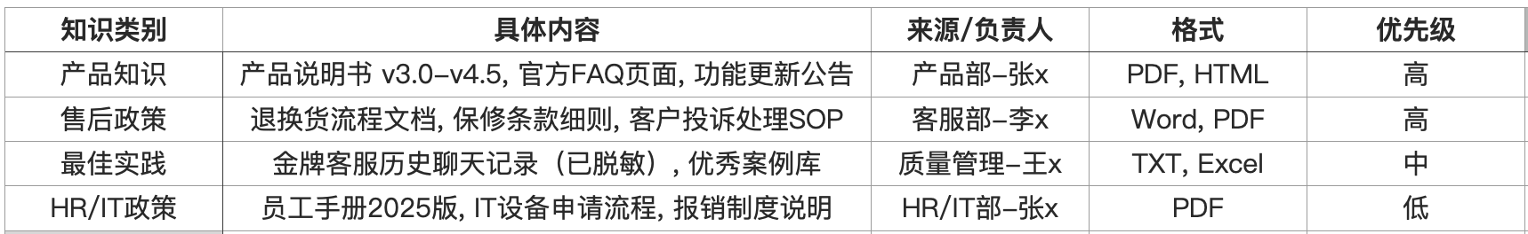 – 规划和管理知识源:RAG系统的上限,取决于你图书馆的质量。我们需要规划哪些知识应该被纳入(产品文档、HR政策、历史邮件等),按照什么样的结构进行分类,并建立一套持续更新和审核知识的机制。