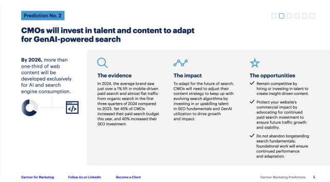 Gartner Marketing Predictions(2025)显示:“到2026年,超过三分之一的网络内容将专门为人工智能和搜索引擎消费而开发“。