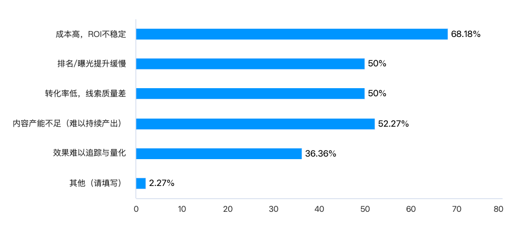 调研问题:目前在 SEO/SEM 或品牌内容推广方面遇到的主要挑战