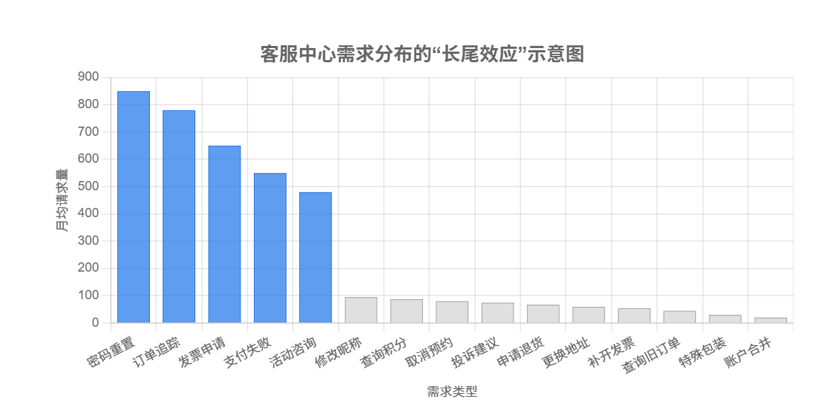 这些零零散散、看似不起眼的需求,就是典型的“长尾需求”;它们种类繁多,单个拎出来看,发生频率不高,影响范围不大;但架不住它们量大啊!汇集起来,就成了拖垮整个服务体验的罪魁祸首。
