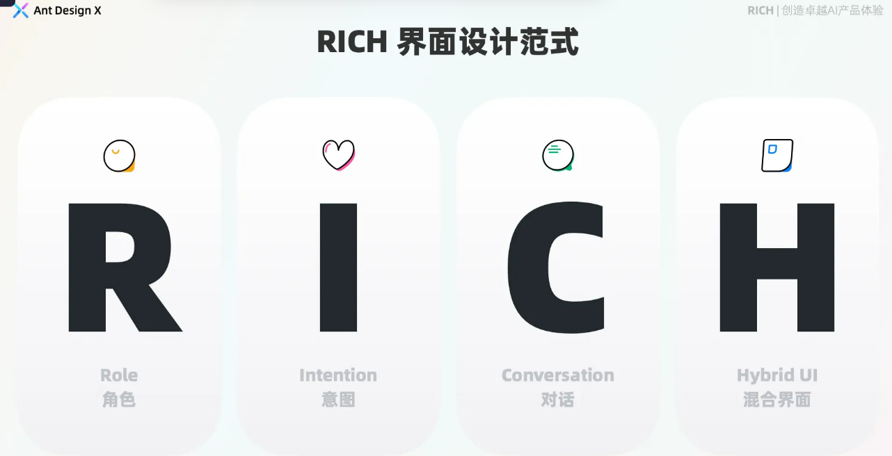 RICH 是蚂蚁AI设计小组提出来的一个 AI 界面设计范式,好比 WIMP 范式之于图形用户界面。