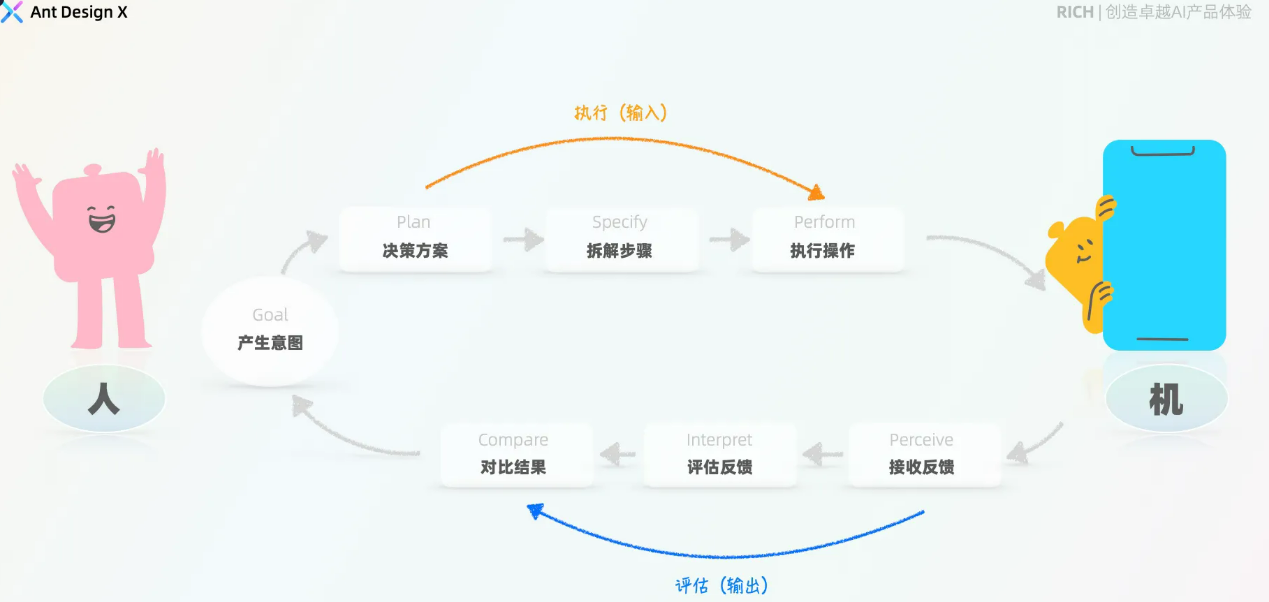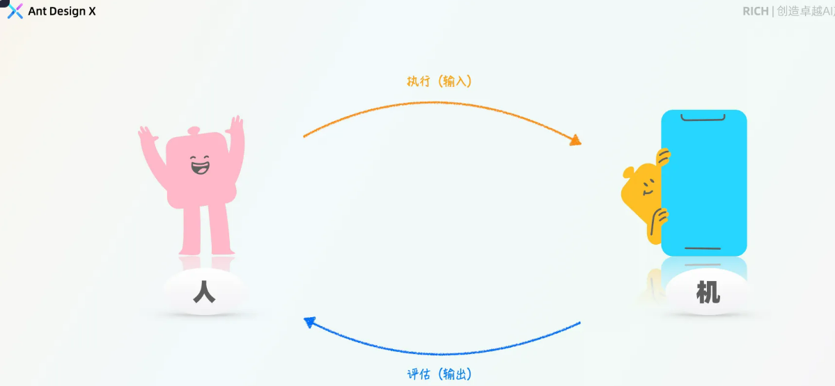 人机交互的本质是用户通过执行某种动作或行为输入给机器,机器理解并完成诉求后产出结果给用户,用户评估是否符合要求,如果符合,一个交互单元就完成了闭环。