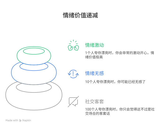 但人类的心理机制中还存在一个“边际效用递减”的定律,它同样适用于情绪价值: